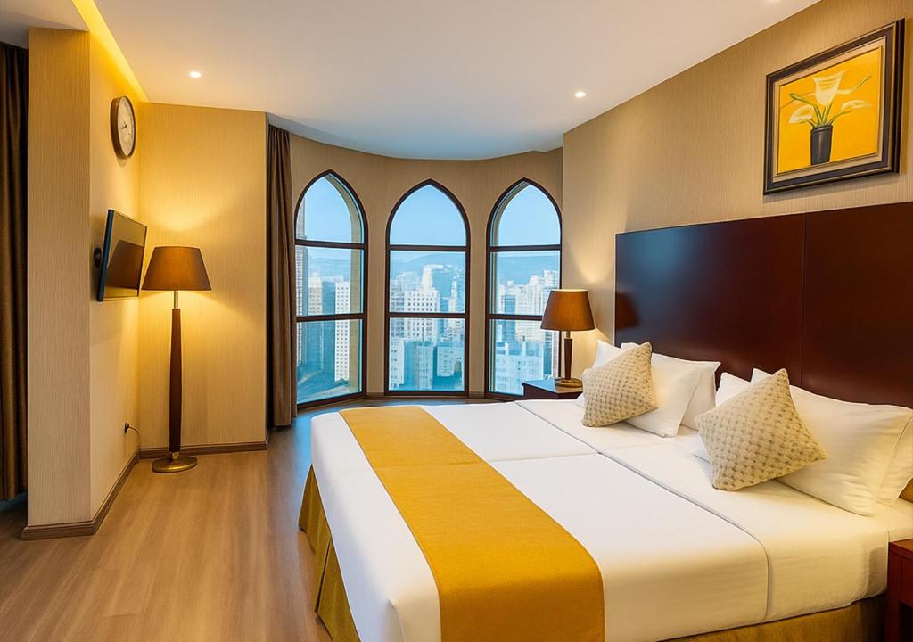 Located in Makkah, 1.4 km from Masjid Al Haram, Land Premium 1 Hotel has a number of amenities including a shared lounge on The Floor, 1.6 km from Safwah tower, the property is also a 20-minute walk away from Abraj Al Bait. Free WiFi is available throughout the property. All units at the hotel are fitted with a flat-screen TV. Each room is fitted with a private bathroom with free toiletries. The units will provide guests with a fridge. Staff at the 24-hour front desk can lend a hand with guidance about the area. Um AlQura University is 6 km from Land Premium 1 Hotel. King Abdulaziz International Airport is 74 km from the property, and the property offers a free shuttle service to & From Haram . Private parking Free