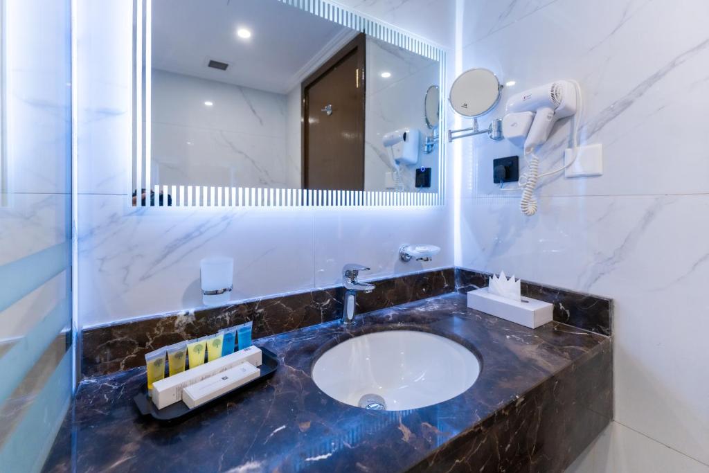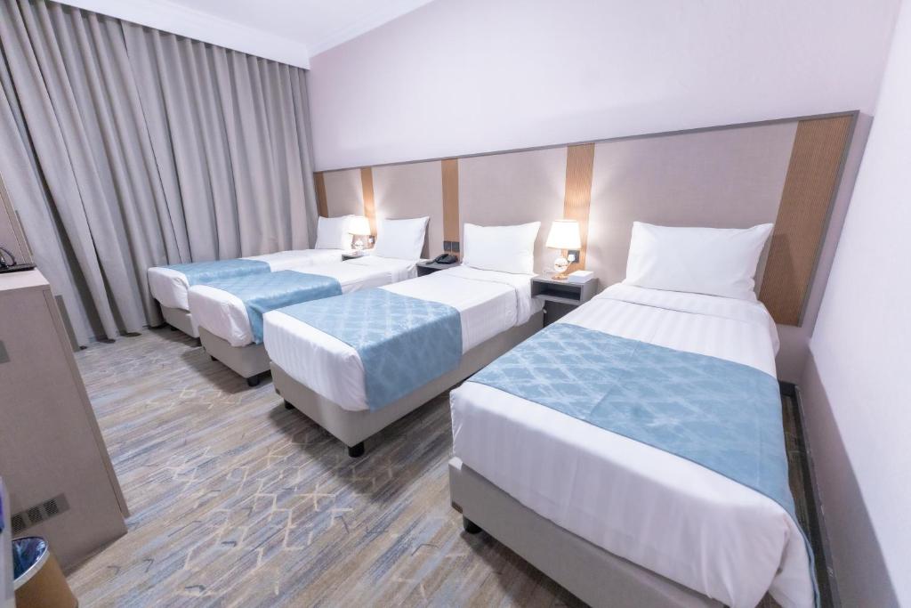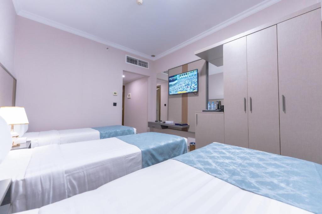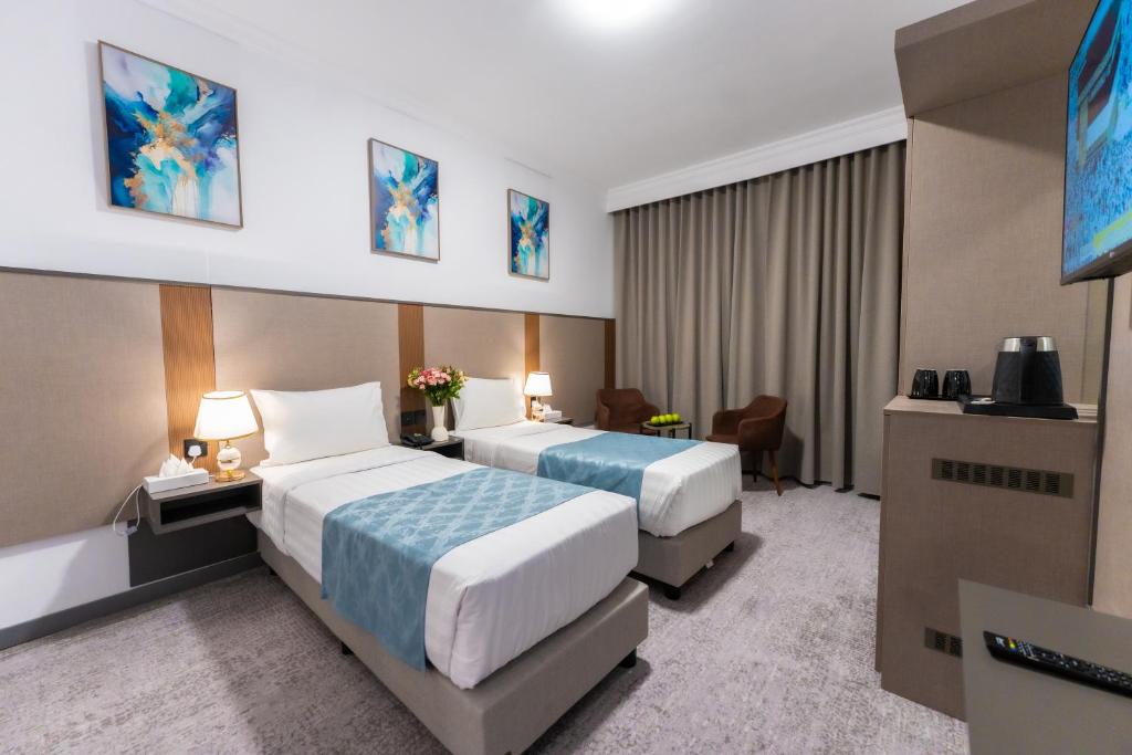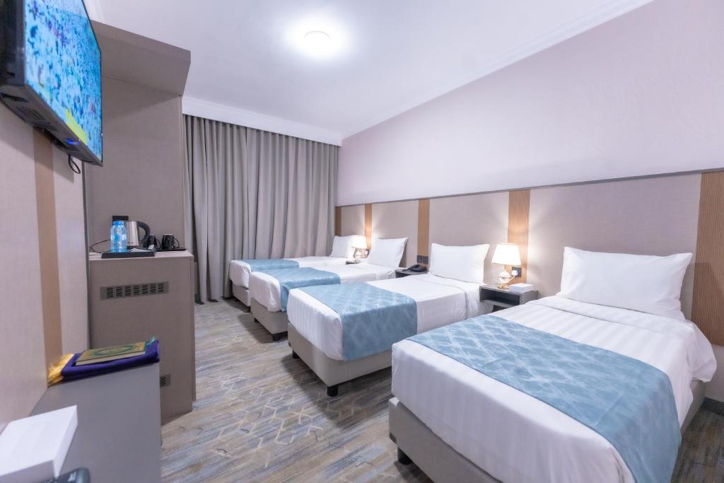 Comfortable Accommodations: Araek Taiba Hotel in Al Madinah offers air-conditioned rooms with private bathrooms, tea and coffee makers, hairdryers, work desks, free toiletries, showers, carpeted floors, and TVs. Convenient Facilities: Guests benefit from a 24-hour front desk and paid on-site private parking. Reception staff speak Arabic, Bengali, English, Hindi, and Urdu. Prime Location: Located 15 km from Prince Mohammad bin Abdulaziz International Airport, the hotel is an 8-minute walk from Al-Masjid an-Nabawi. Nearby attractions include Quba Mosque (5 km) and Mount Uhud (8 km). Guests appreciate the convenient location and suitability for city trips.