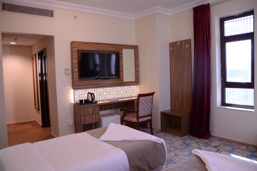 Comfortable Accommodations: Artal Al Alami Hotel in Al Madinah offers family rooms with free WiFi, private check-in and check-out services, and a 24-hour front desk. Guests can enjoy amenities such as a lift, minimarket, coffee shop, and bicycle parking. Convenient Location: Located 12 km from Prince Mohammad bin Abdulaziz International Airport, the hotel is an 8-minute walk from Al-Masjid an-Nabawi. Nearby attractions include Qiblatain Mosque and Mount Uhud, each 6 km away. Exceptional Service: Guests appreciate the attentive staff and excellent service support. The hotel provides a business area, housekeeping, room service, and full-day security, ensuring a comfortable stay