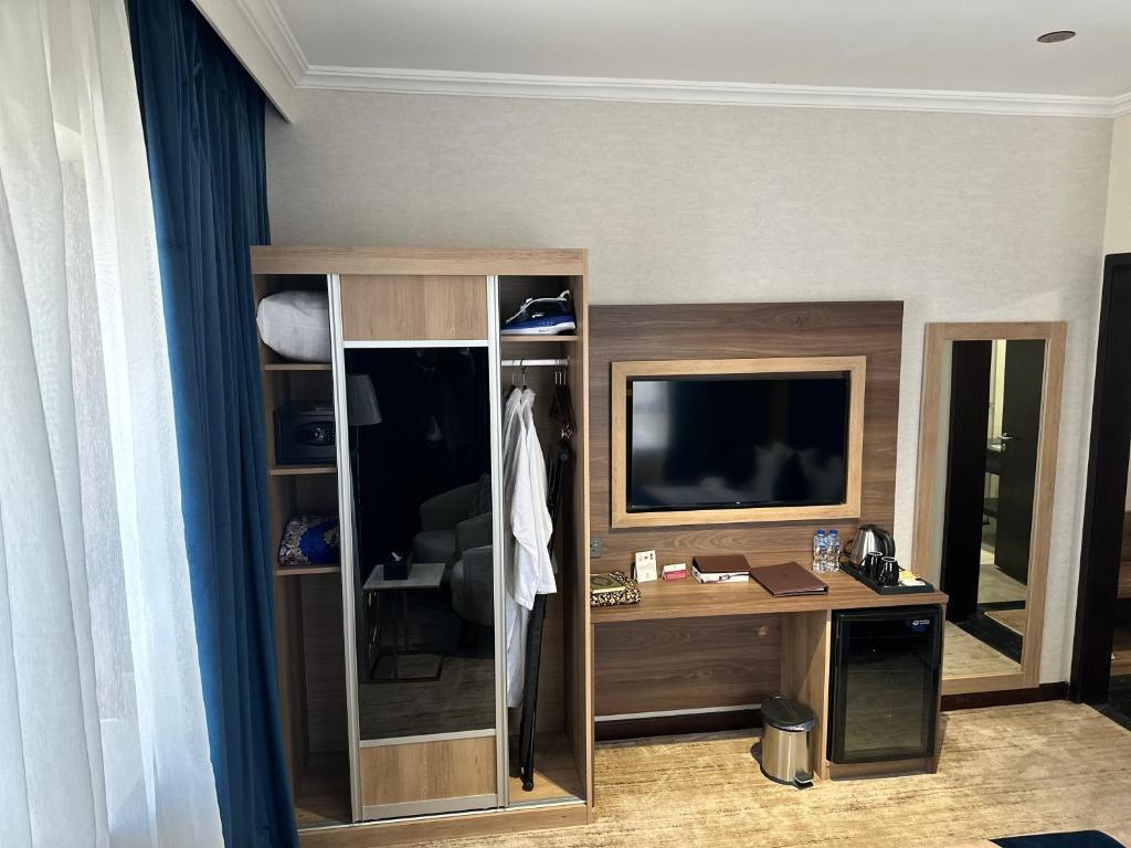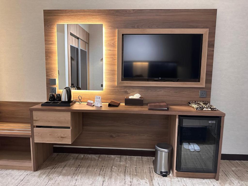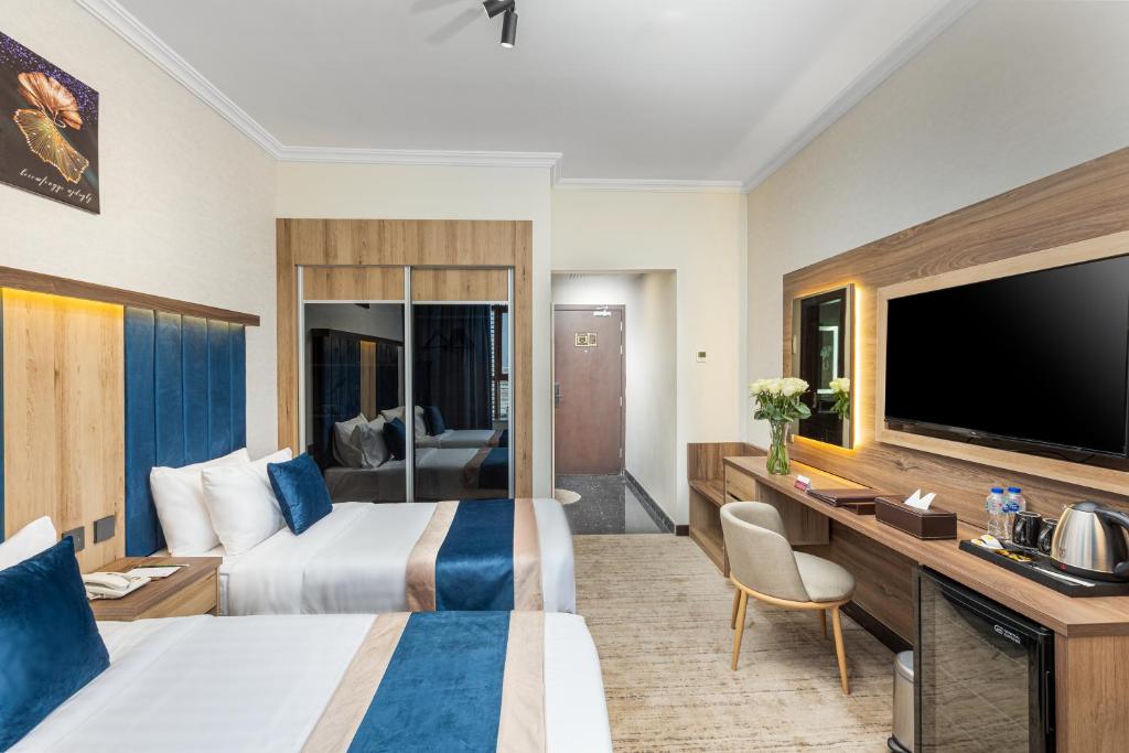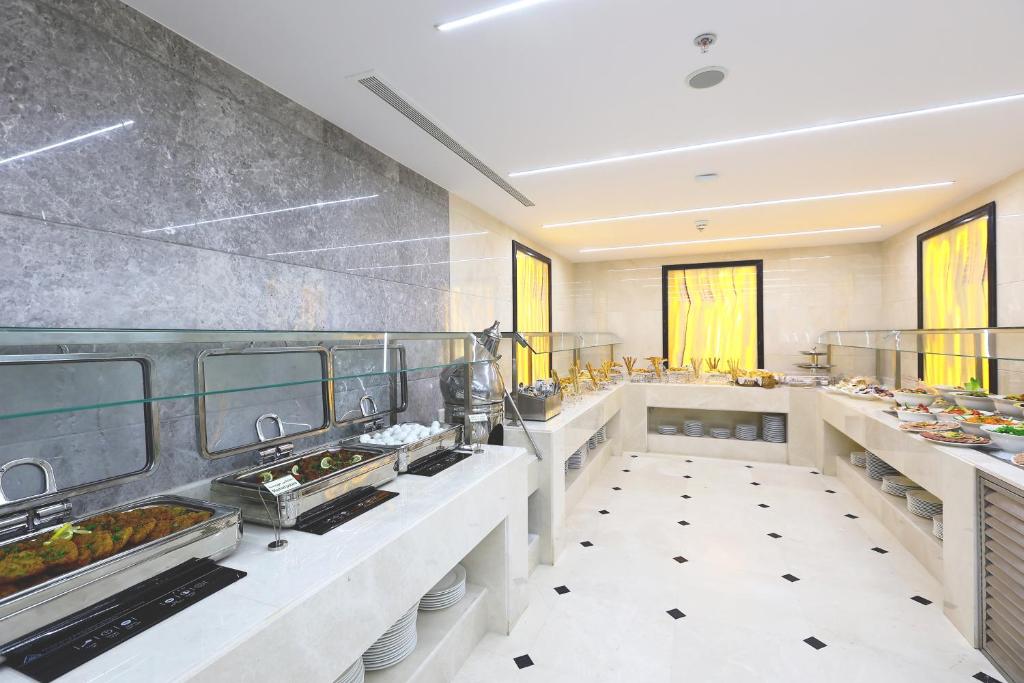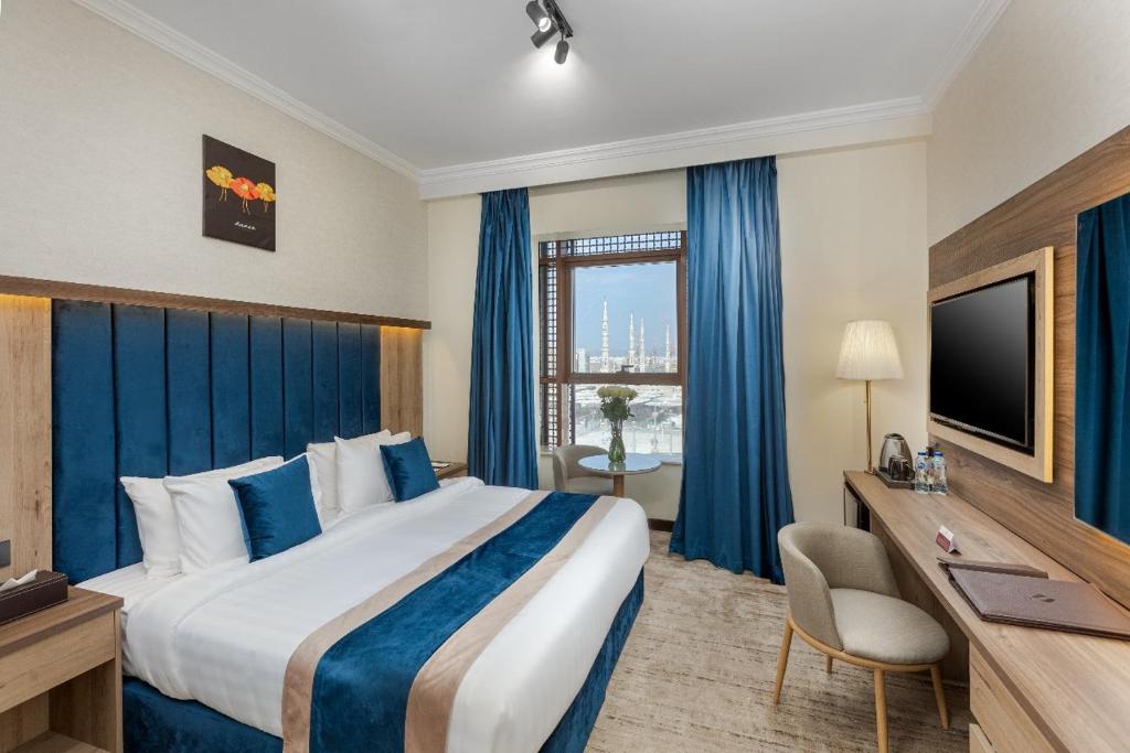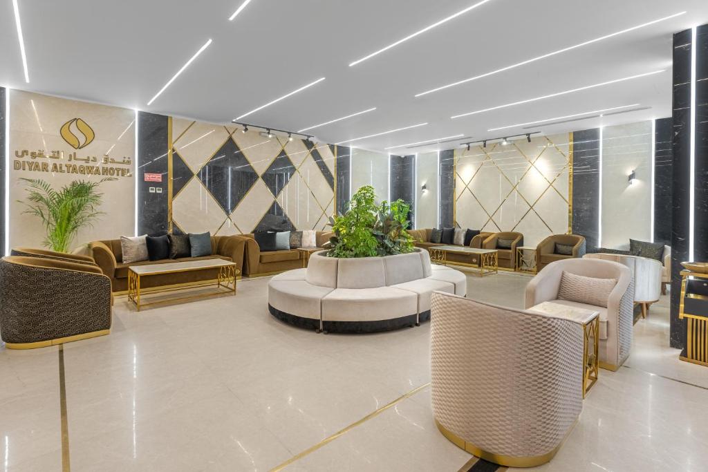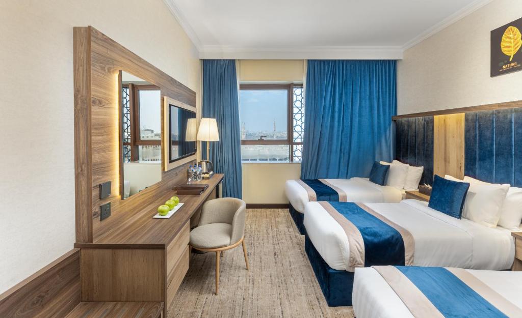 Comfortable Accommodations: Diyar Altaqwa Hotel in Al Madinah offers family rooms with air-conditioning, private bathrooms, and free WiFi. Each room includes a dining table, minibar, and TV, ensuring a pleasant stay. Dining and Leisure: Guests can enjoy a terrace, restaurant, and bar, providing ample space for relaxation and socialising. The hotel also features a coffee shop and a 24-hour front desk, catering to all needs. Convenient Location: Located 15 km from Prince Mohammad bin Abdulaziz International Airport, the hotel is a 7-minute walk from Al-Masjid an-Nabawi. Nearby attractions include Qiblatain Mosque (4.4 km) and Mount Uhud (8 km).
