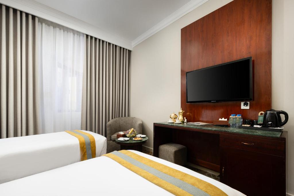 Situated in Makkah, 850 m from Masjid Al Haram, Emaar Al Manar features concierge services and free WiFi. The property is around 10 km from Hira Cave, 4.8 km from Makkah Museum and 10 km from Assalamu Alaika Ayyuha Annabi. The hotel has family rooms. The hotel will provide guests with air-conditioned rooms offering a desk, a kettle, a fridge, a safety deposit box, a flat-screen TV and a private bathroom with a shower. At Emaar Al Manar the rooms are fitted with bed linen and towels. With staff speaking Arabic, English and Urdu, non-stop advice is available at the reception. Popular points of interest near the accommodation include Zamzam Well, Masjid Al Haram King Fahd Gate and Masjid Al Haram King Abdul Aziz Gate. The nearest airport is King Abdulaziz International Airport, 92 km from Emaar Al Manar.