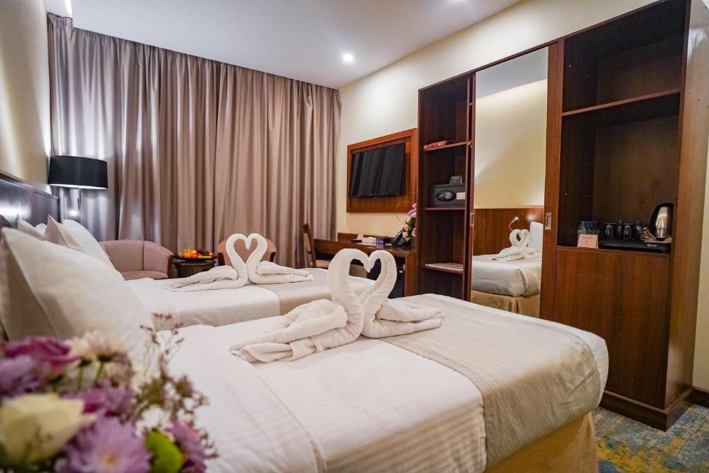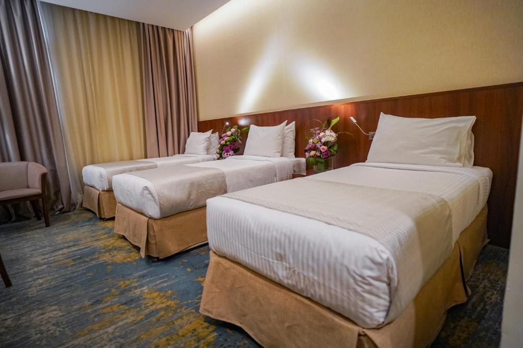 Comfortable Accommodations: Emaar Elite Hotel in Makkah offers 3-star comfort with free WiFi, air-conditioning, and private check-in and check-out services. Each room includes a bidet, walk-in shower, refrigerator, and TV. Convenient Facilities: Guests benefit from a shuttle service, lift, 24-hour front desk, concierge, housekeeping, and full-day security. Additional amenities include a seating area, free toiletries, and tiled floors. Prime Location: Located 94 km from King Abdulaziz International Airport, the hotel is a short walk from Masjid Al Haram (19 minutes) and Zamzam Well (1.6 km). Nearby attractions include Makkah Museum (6 km) and Hira Cave (9 km). Guest Satisfaction: Guests appreciate the room cleanliness, attentive staff, and convenient location.