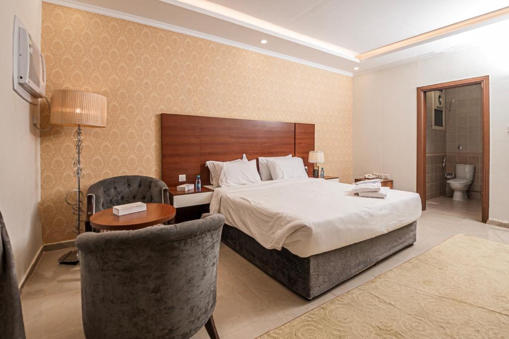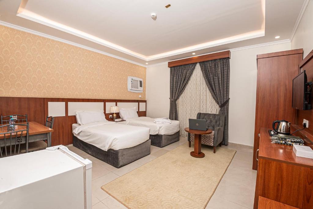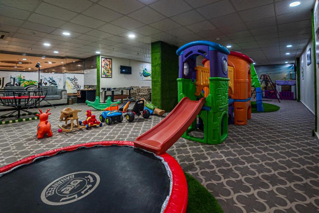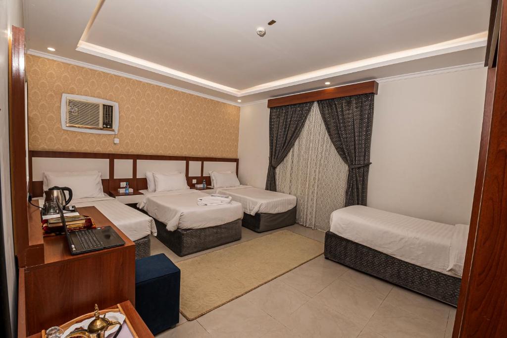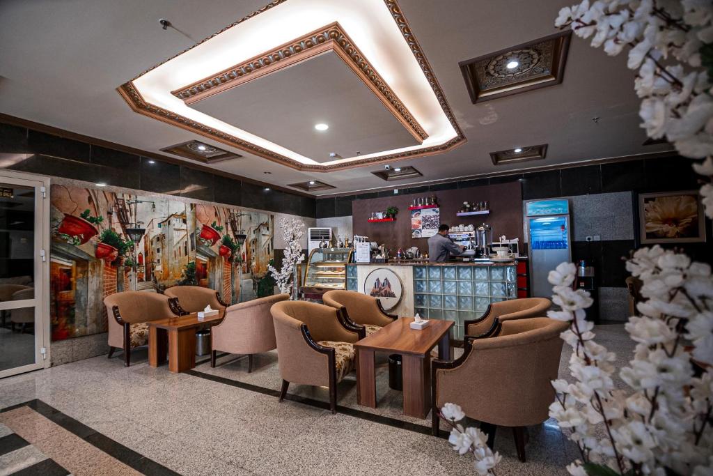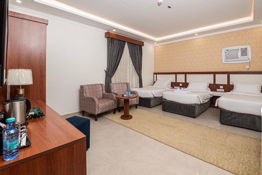 Comfortable Accommodations: GHALIA Hotel in Al Madinah offers family rooms with air-conditioning, private bathrooms, and modern amenities. Each room includes a kitchenette, washing machine, and free WiFi. Leisure Facilities: Guests can relax in the garden, terrace, or bar. The aparthotel features a lounge, games room, and indoor play area. Additional amenities include a minimarket, coffee shop, and picnic area. Convenient Location: Located 11 km from Prince Mohammad bin Abdulaziz International Airport, the hotel is near Al-Masjid an-Nabawi (5 km) and Mount Uhud (4.6 km). Guests appreciate the convenient location and excellent service.