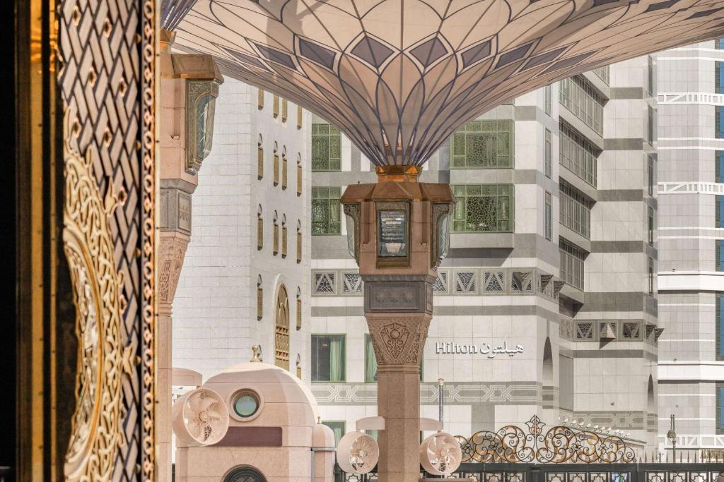 The Madinah Hilton Hotel is located only a short walk from the Holy Mosque, right in the heart of Madinah's shopping district. It offers rooms with satellite TV. Each room is air conditioned and some have a seating area. A work desk and a minibar are fitted in all accommodation. Madinah Hilton Hotel has a range of shops on the ground floor. The hotel also provides a 24-hour reception, a business centre and a tour desk. Guests can enjoy a meal of traditional Arabian delicacies in the hotel’s Madinah Restaurant while admiring the view of the Holy Mosque. Madinah Hilton offers room service as well. Prince Mohammed Airport is 25 minutes' drive away.