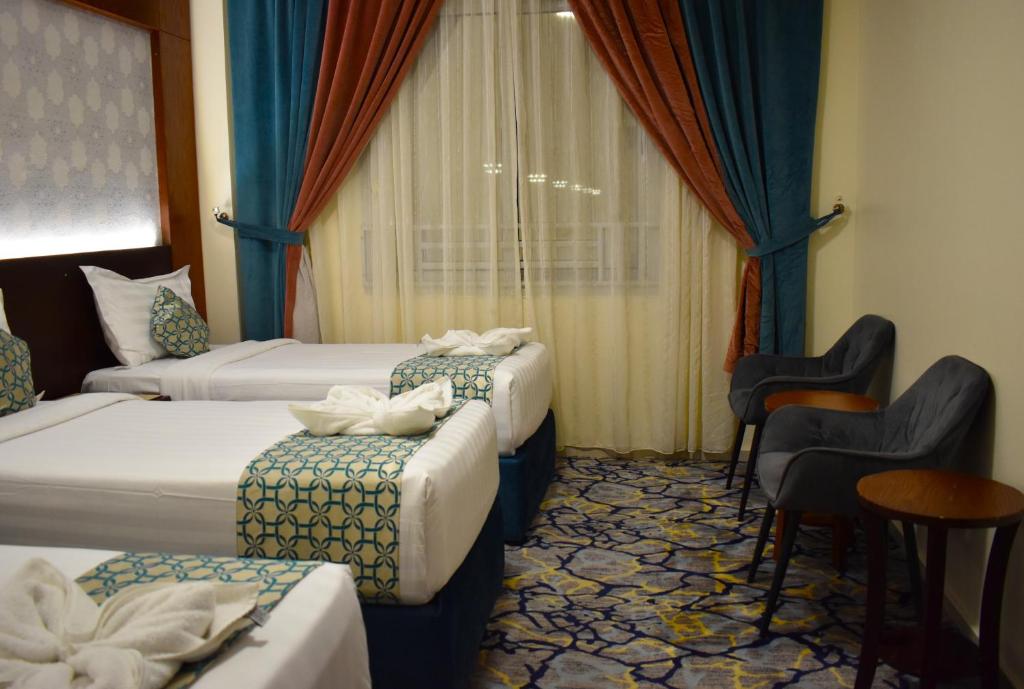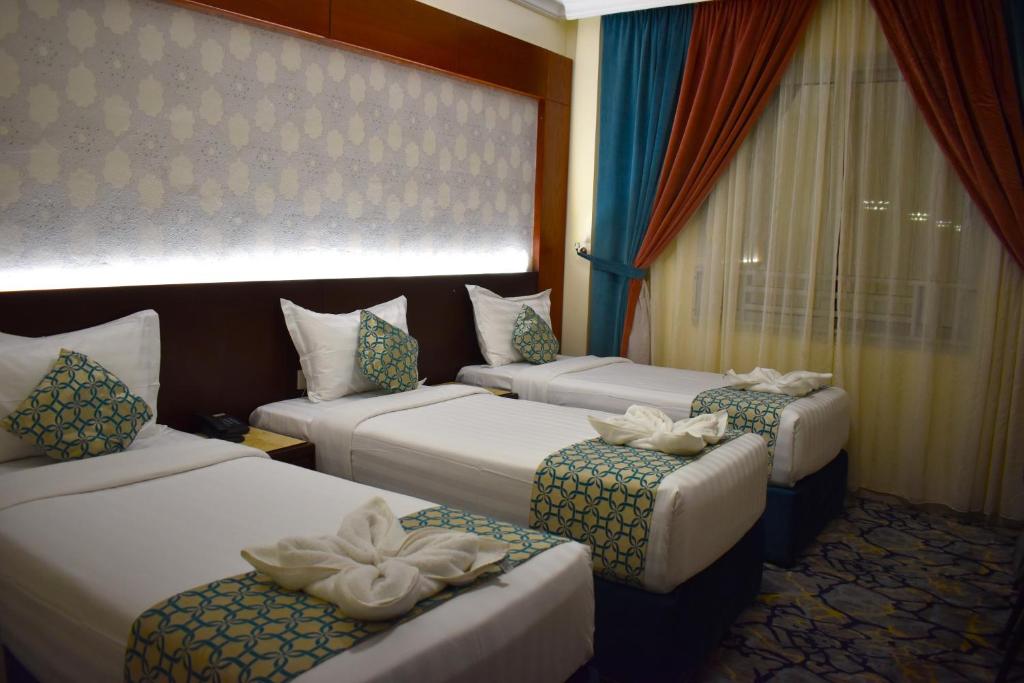 Essential Facilities: Guests enjoy free WiFi, a 24-hour front desk, and room service. Additional amenities include a bath, bidet, hairdryer, free toiletries, shower, TV, and electric kettle. Prime Location: Located in the city centre, the hotel is a 7-minute walk from Al-Masjid an-Nabawi. Prince Mohammad bin Abdulaziz International Airport is 15 km away. Nearby attractions include Qiblatain Mosque (4.6 km), Mount Uhud (8 km), and Al Hukeer Lowna Park (8 km).