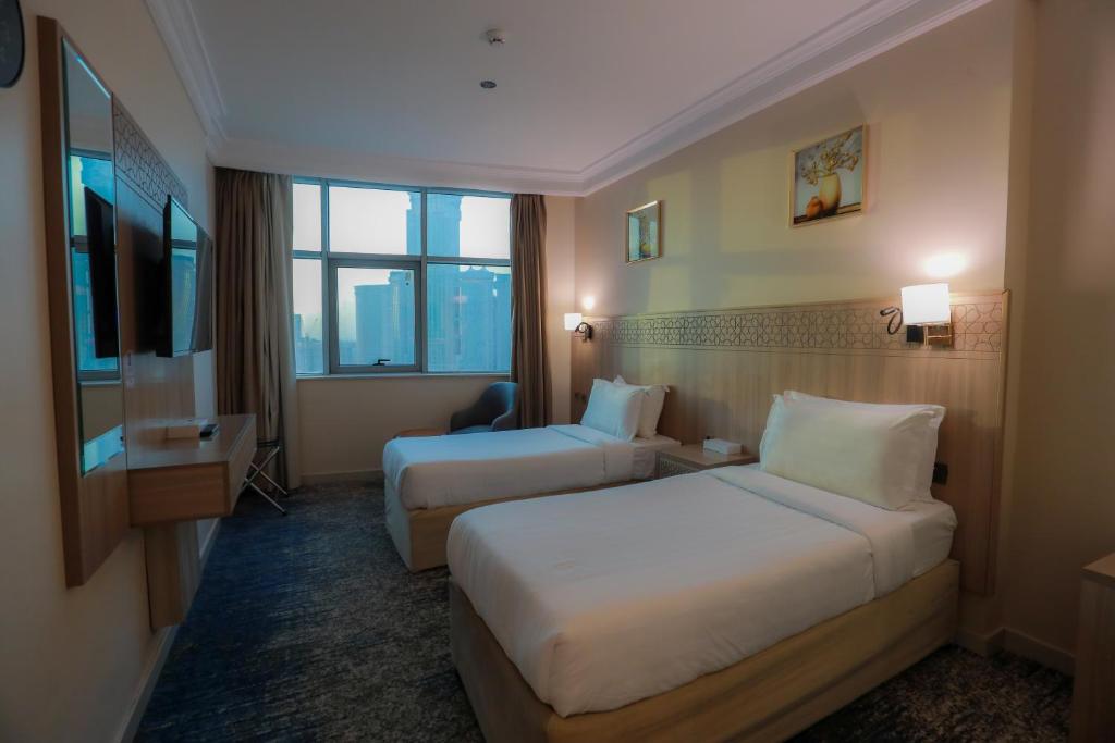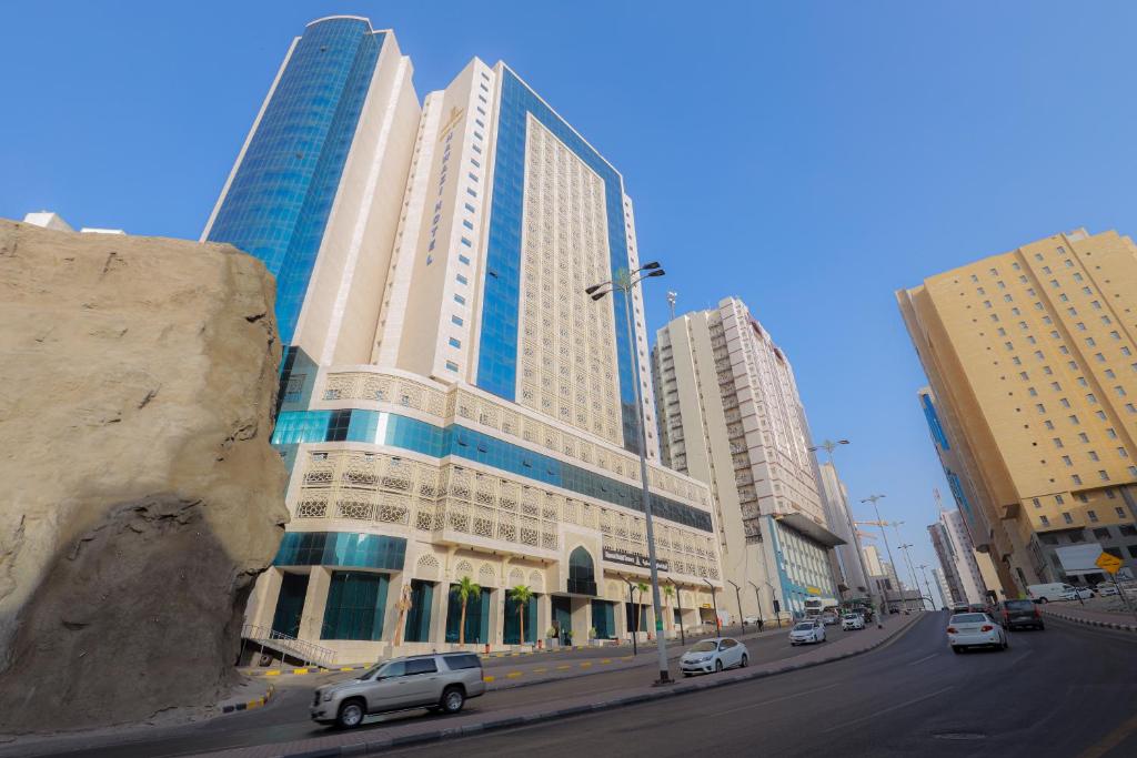 Comfortable Accommodations: Nawazi Towers Hotel in Makkah offers family rooms with air-conditioning, private bathrooms, and modern amenities. Each room includes a work desk, TV, and free WiFi, ensuring a pleasant stay. Dining Experience: The family-friendly restaurant serves lunch and dinner in a welcoming ambience. Guests can enjoy a variety of meals, catering to special diets with menus available. Convenient Facilities: The hotel features a garden, coffee shop, and free WiFi. Additional services include private check-in and check-out, shuttle service, and a 24-hour front desk. Prime Location: Located 94 km from King Abdulaziz International Airport, the hotel is a short walk from Masjid Al Haram and close to attractions such as Makkah Museum and Hira Cave. Public transport options and an airport shuttle enhance the stay.