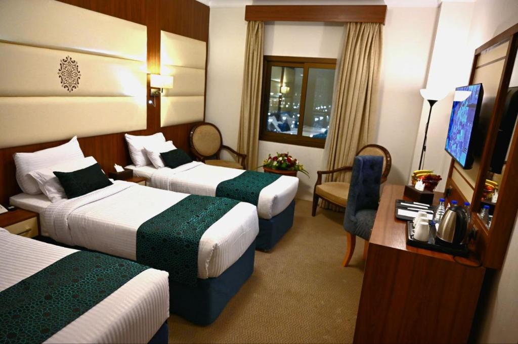 Comfortable Accommodations: One Inn Hotel in Al Madinah offers family rooms with air-conditioning, baths, and free WiFi. Each room includes a work desk, TV, and wardrobe, ensuring a pleasant stay. Dining and Services: Guests can enjoy a restaurant on-site and take advantage of room service. The hotel provides a 24-hour front desk, offering assistance in Arabic and English. Prime Location: Located 13 km from Prince Mohammad bin Abdulaziz International Airport, the hotel is a 5-minute walk from Al-Masjid an-Nabawi. Nearby attractions include Quba Mosque (3.8 km) and Mount Uhud (9 km). Guests appreciate the scenic city views and convenient location.
