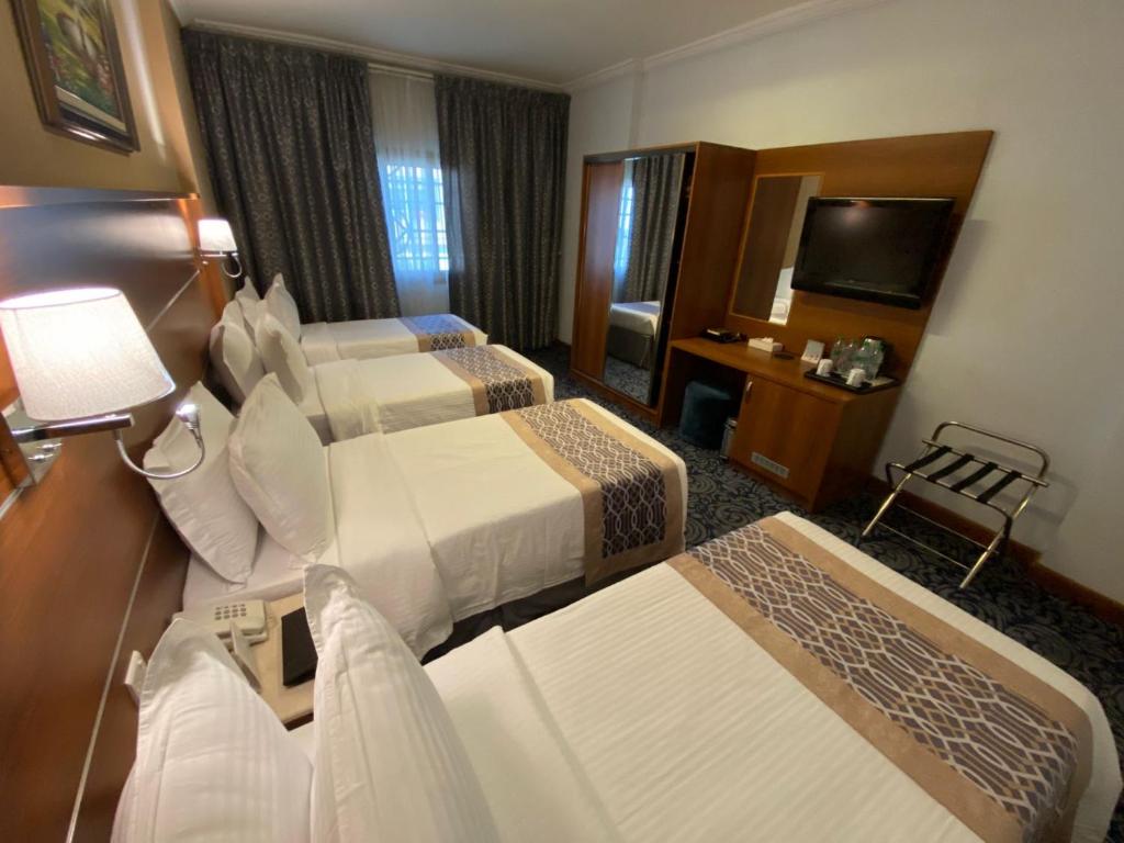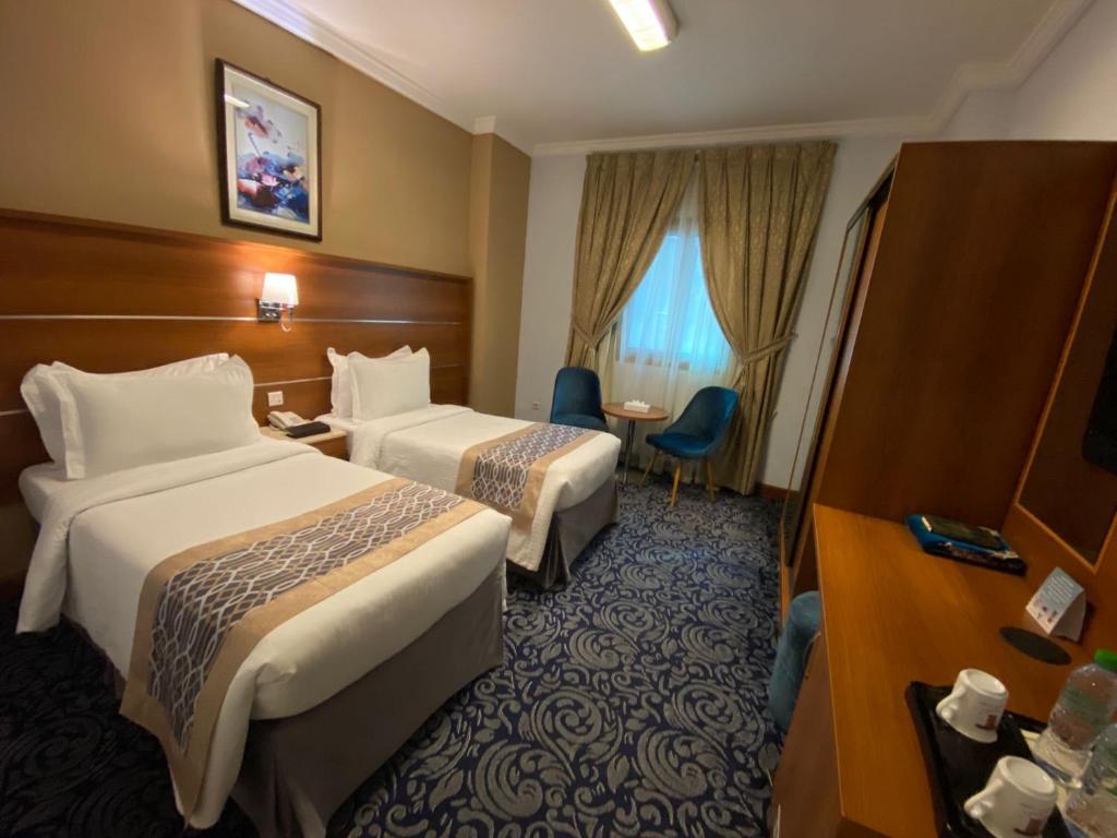 Saraya Harmony Hotel C is located within 2 minutes’ walking distance from Al-Masjid Al-Nabawi in Madinah. There is a 24-hour front desk, a safety deposit box, and a restaurant offering room service. Free Wi-Fi is available in public areas. The rooms are air-conditioned and feature a flat-screen TV, a fridge, and a tea/coffee maker. Wake up service is available as well. The airport is 15 km from Saraya Harmony Hotel C.