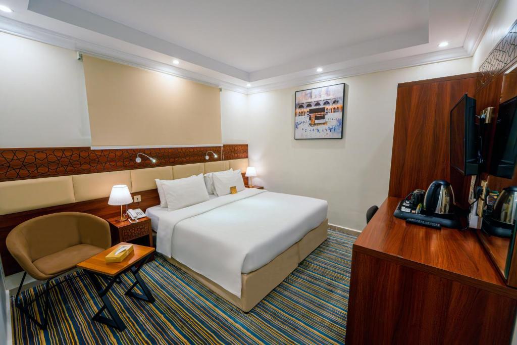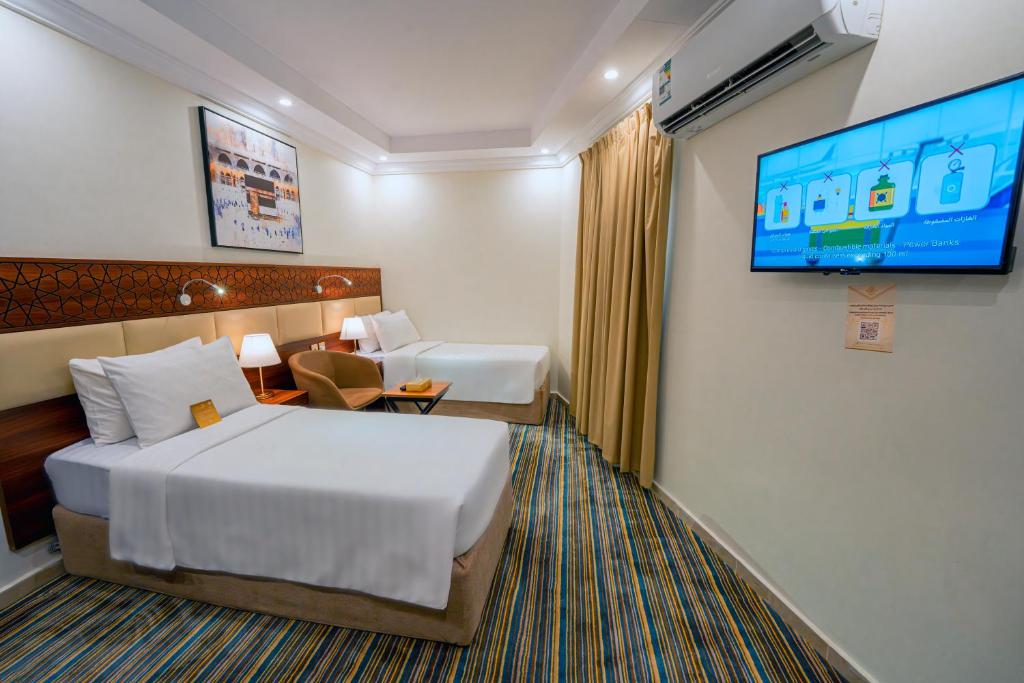 Comfortable Accommodations: Snood Ajyad Tower One in Makkah offers family rooms with air-conditioning, private bathrooms, and free WiFi. Each room includes a work desk, TV, and soundproofing for a pleasant stay. Convenient Facilities: Guests benefit from private check-in and check-out, a 24-hour front desk, and a minimarket. Additional amenities include a hot tub, fireplace, and outdoor seating area. Prime Location: Located 93 km from King Abdulaziz International Airport, the hotel is an 8-minute walk from Masjid Al Haram and close to Zamzam Well (700 metres). Nearby attractions include Makkah Museum (5 km) and Hira Cave (9 km).