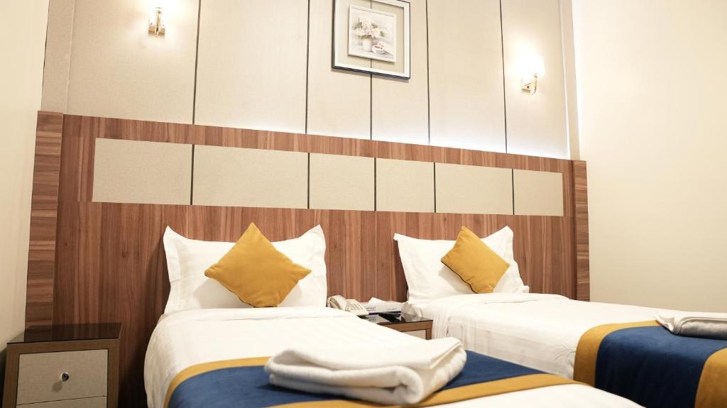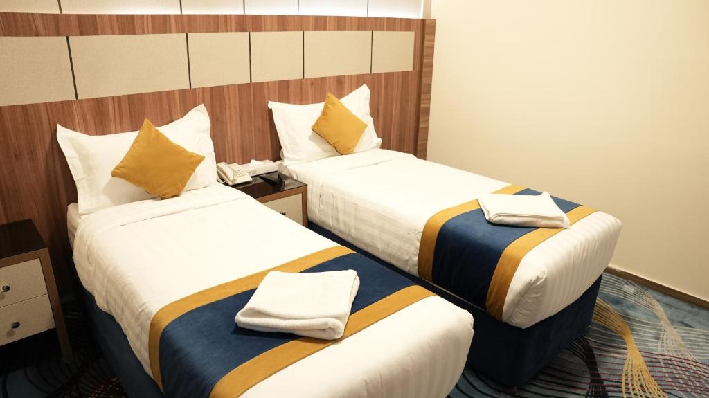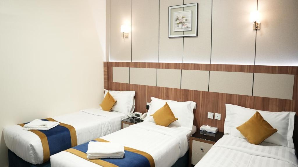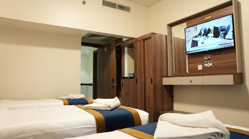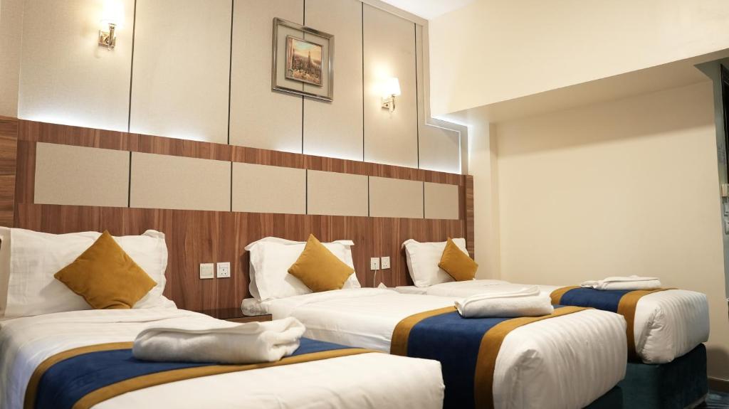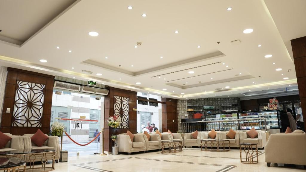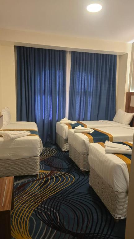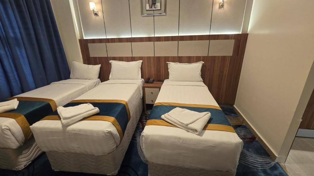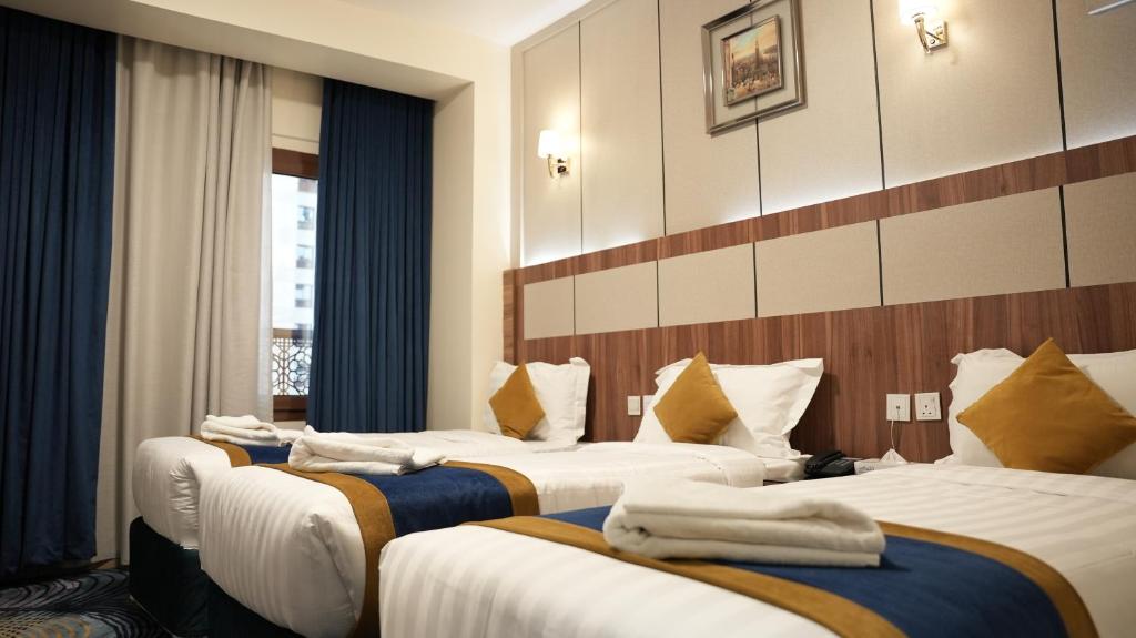Comfortable Accommodations: Tabah Towers Hotel in Al Madinah offers family rooms with air-conditioning, private bathrooms, and free WiFi. Each room includes a bath, bidet, walk-in shower, free toiletries, TV, electric kettle, and wardrobe. Convenient Facilities: Guests benefit from a 24-hour front desk, room service, and free toiletries. The hotel provides a carpeted floor and a hairdryer for added comfort. Prime Location: Located 12 km from Prince Mohammad bin Abdulaziz International Airport, the hotel is a 9-minute walk from Al-Masjid an-Nabawi. Nearby attractions include Qiblatain Mosque (5 km) and Mount Uhud (7 km).