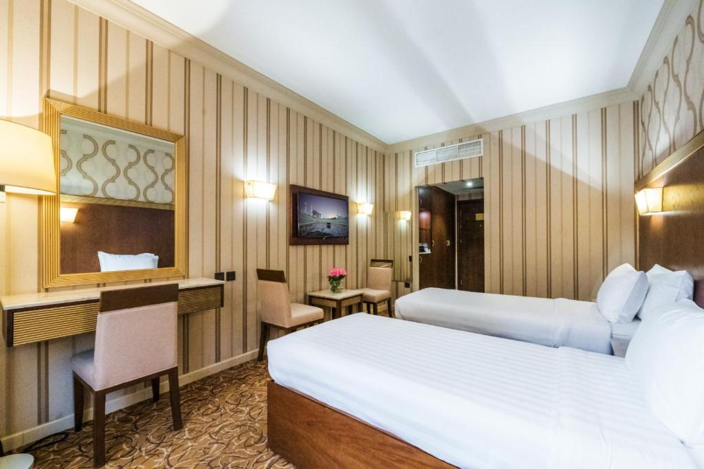 يوفر مكان إقامة "Dhiafat Al Raja Hotel" غرفاً مع واي فاي مجاني في موقع مثالي في مكة المكرمة، على بعد 1.6 كم من المسجد الحرام و1.4 كم من زمزم ويل. يبعد مكان الإقامة تقريباً مسافة 10 كم عن غار حراء، و5.2 كم عن متحف مكة المكرمة، و10 كم عن السلام عليك أيها النبي. يمكن للضيوف الاستفادة مما يلي في مكان الإقامة: خدمة الغرف ومركز أعمال. تحتوي جميع الغرف على جهاز تكييف وتلفزيون بشاشة مسطحة مع قنوات فضائية وثلاجة وغلاية، بالإضافة إلى دش ولوازم استحمام مجاناً وخزانة ملابس. تحتوي جميع الغرف على حمّام خاص مع حوض استحمام ومجفف للشعر. تحتوي غرف الضيوف في "Dhiafat Al Raja Hotel" على منطقة جلوس. تتوفر المساعدة على مدار الساعة في مكتب الاستقبال، حيث يتحدث الموظفون اللغة العربية والإنجليزية. تشمل المعالم السياحية الشهيرة التي تقع بالقرب من "Dhiafat Al Raja Hotel" ما يلي: المسجد الحرام، بوابة الملك عبد العزيز والمسجد الحرام، بوابة الملك عبد الله والمسجد الحرام، بوابة الملك فهد. يقع مطار الملك عبد العزيز الدولي على بُعد 93 كم من مكان الإقامة.